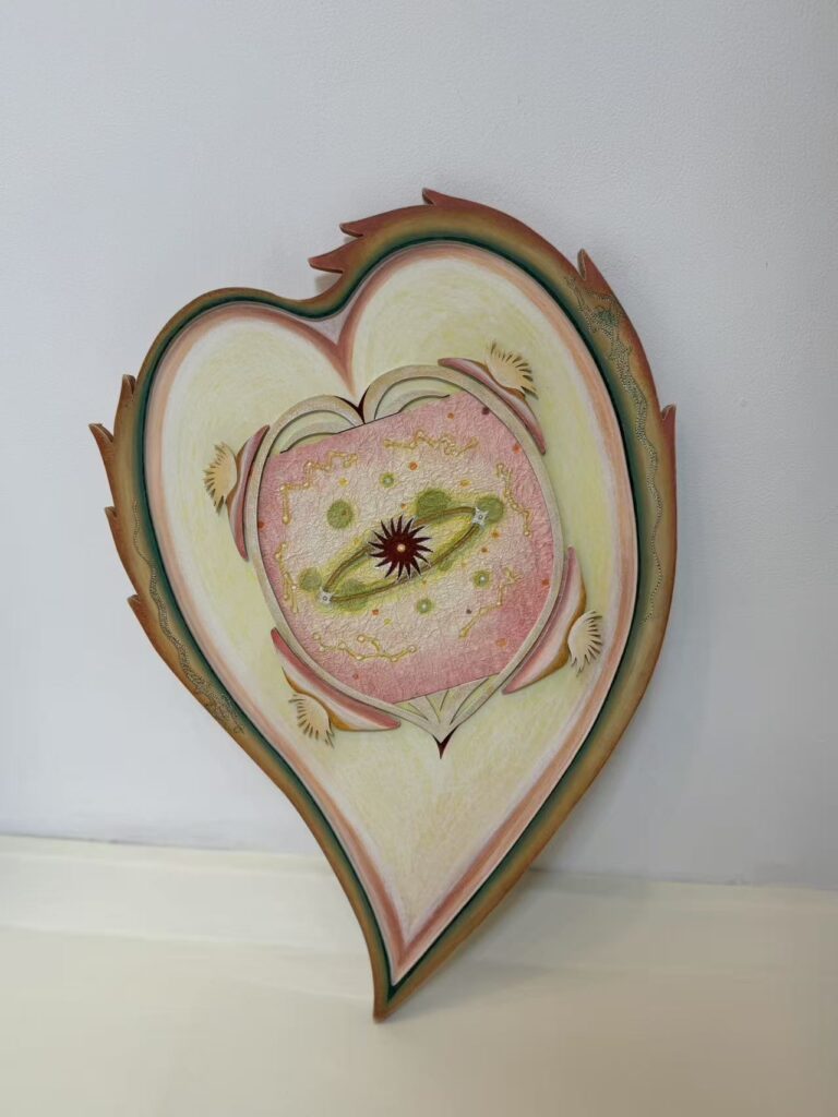 黃慧嫻的作品則將東西方的神秘主義、民間宇宙論、五行理論與占星圖譜融合在一起,繪製出如時間裝置般的抽象圖像,讓觀者進入一個思辨的時空,感受節奏、平衡與元素轉化的詩意運作。在她的作品中,觀看成為一種冥想。
